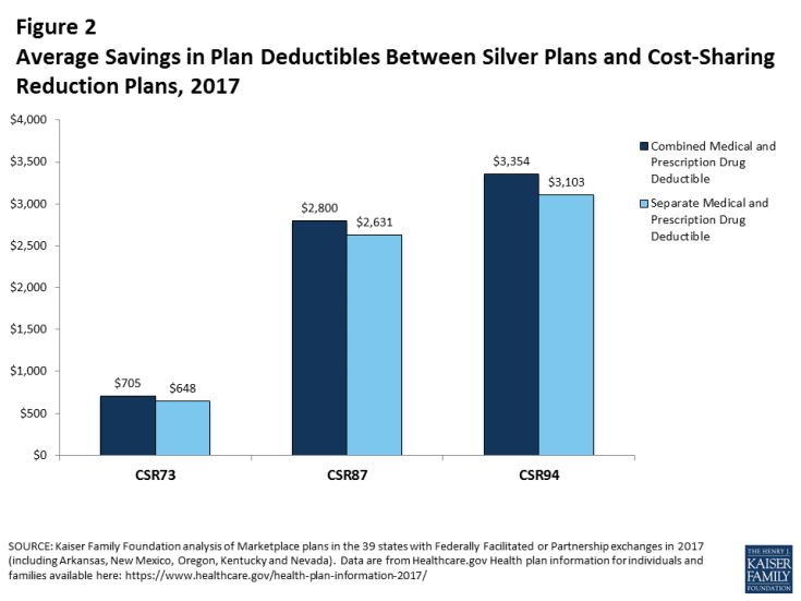 The American Health Care Act (AHCA) proposes several changes to the financial support available to people enrolling in nongroup coverage. In addition to modifying the premium tax credits that people would get, the AHCA would eliminate the provision that reduces the cost sharing burden for lower- and moderate income enrollees who get their coverage through the federal or a state marketplace. The cost-sharing reductions are a key part of the financial support currently provided to these enrollees; over 6.4 million people were enrolled in a plan with reduced cost-sharing in 2016 (See State Health Facts ). This note briefly describes the cost-sharing reductions in current law and illustrates their impact by looking at how these provisions affect average deductibles and out-of-pocket maximum limits in benchmark silver plans in 2017 in states using the federally facilitated marketplace.