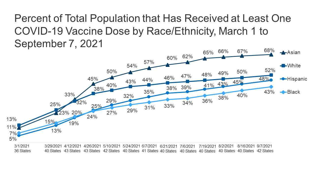 The latest data show that people of color made up 64 percent of people receiving the first dose and 61 percent of people receiving the second/final dose of the COVID-19 vaccine at community health centers.COVID-19 Vaccination among American Indian and Alaska Native People