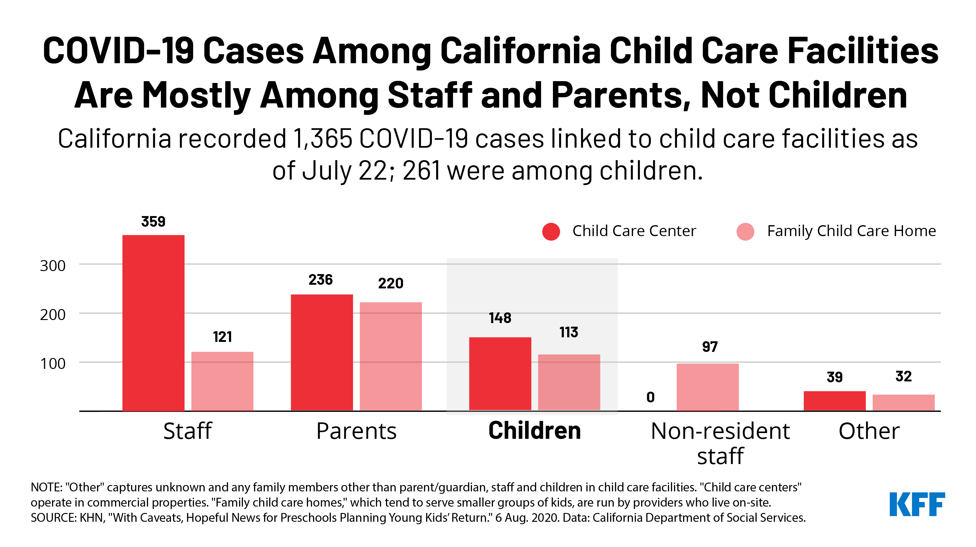 KHN, “With Caveats, Hopeful News for Preschools Planning Young Kids’ Return.” 6 Aug. 2020. Data: California Department of Social Services.
