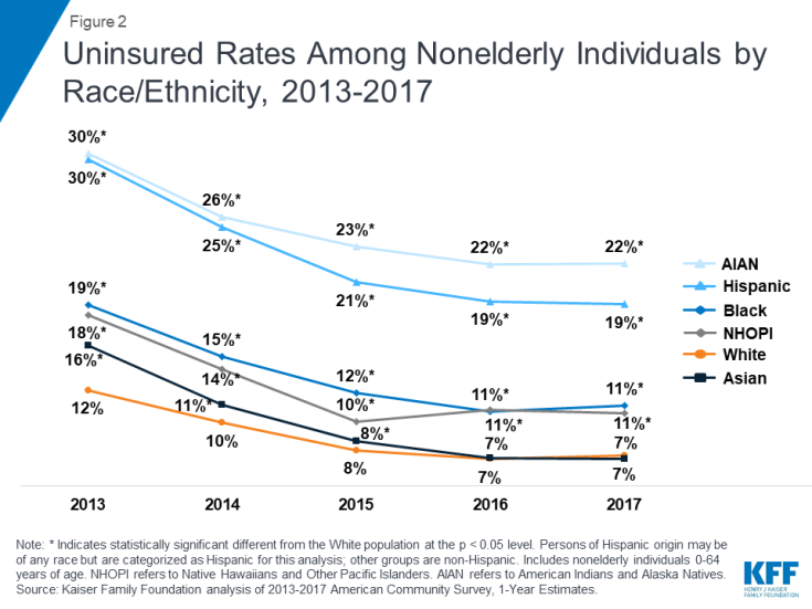 Changes in Health Coverage by Race and Ethnicity since Implementation of the ACA, 2013-2017