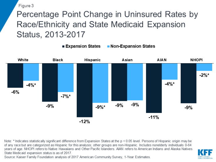 Figure 3: Percentage Point Change in Uninsured Rates by Race/Ethnicity and State Medicaid Expansion Status, 2013-2017