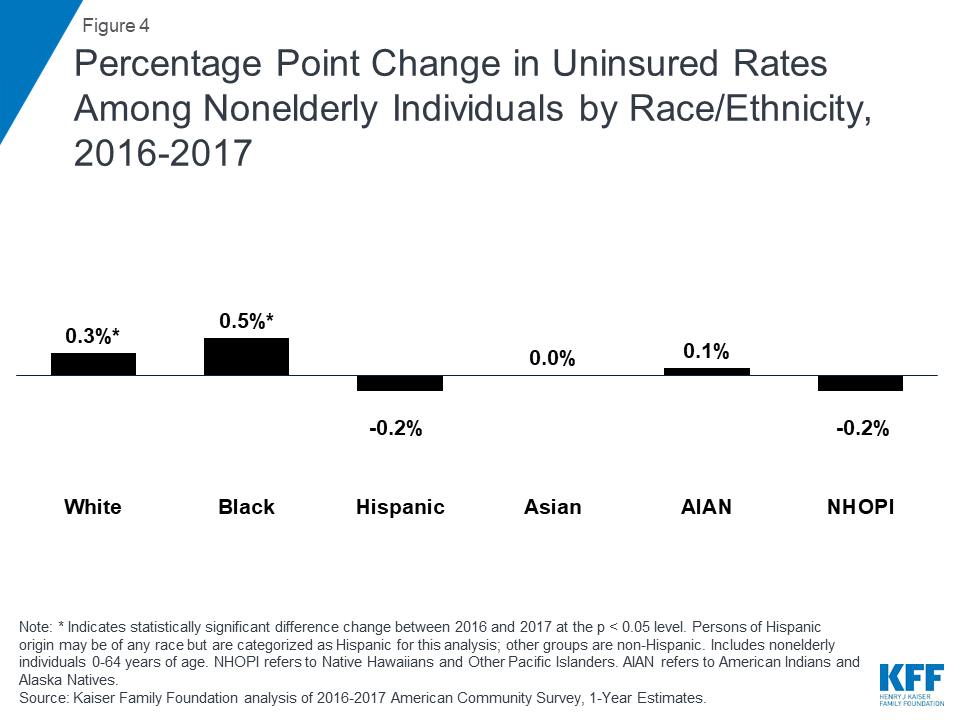 Figure 4: Percentage Point Change in Uninsured Rates Among Nonelderly Individuals by Race/Ethnicity, 2016-2017