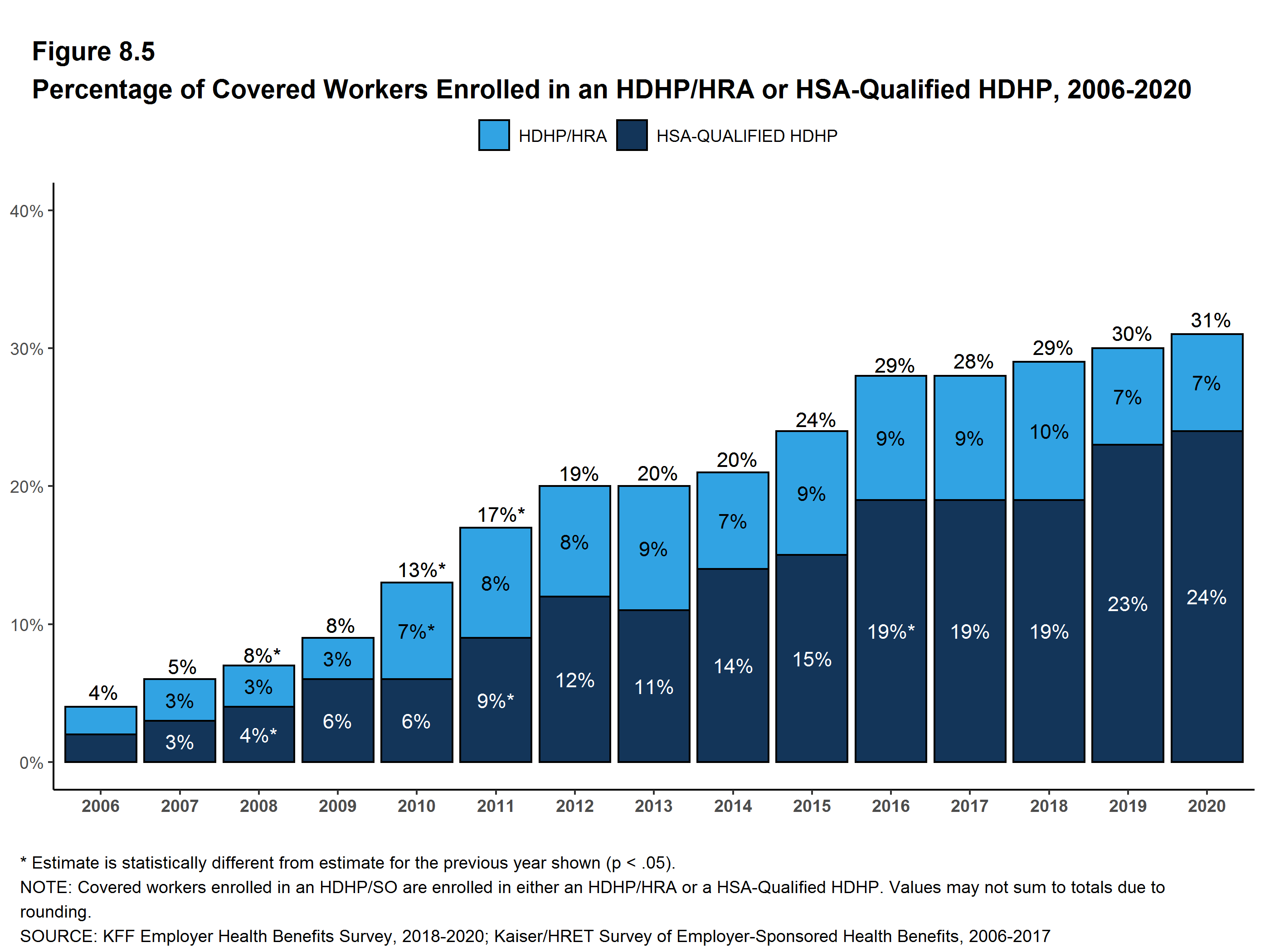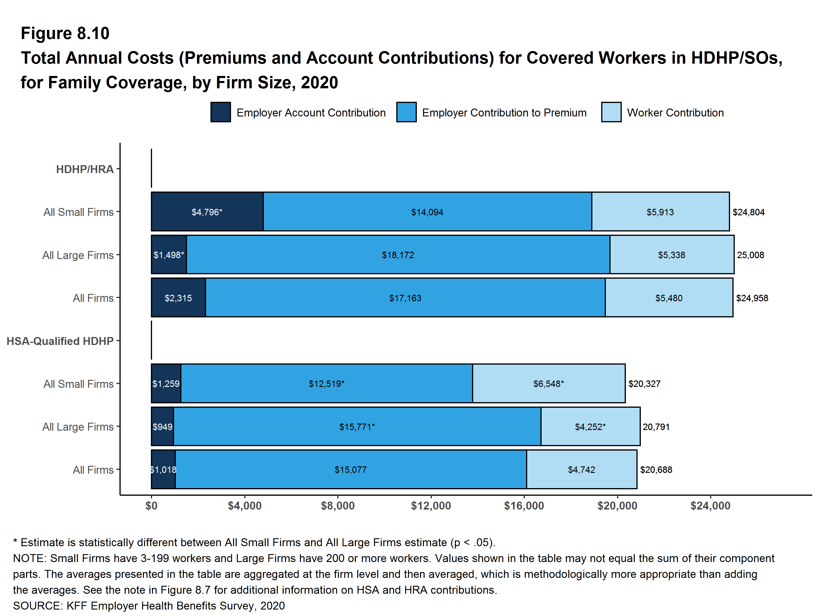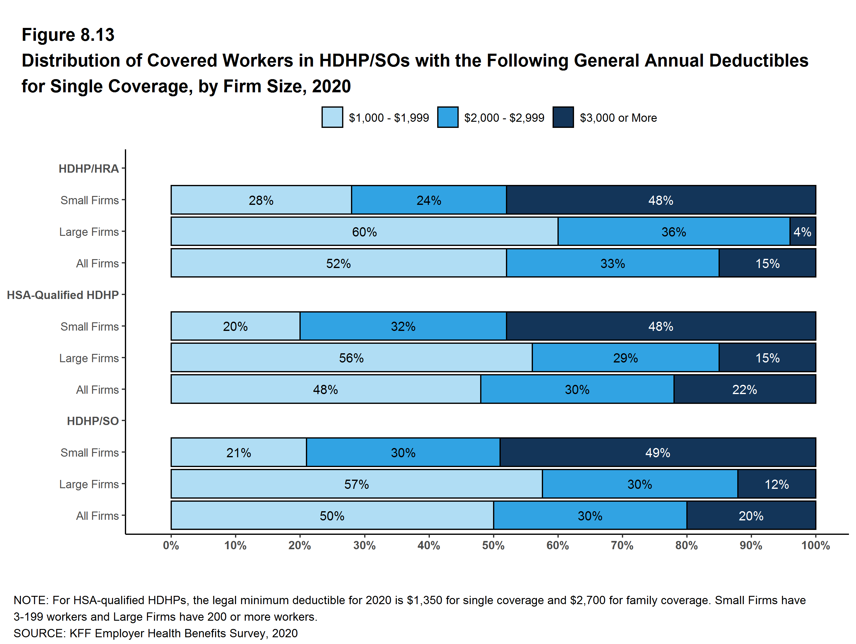 Of course the economic and social changes caused by the coronavirus pandemic have dramatically changed the employment landscape across the nation. Unprecedented job loss combined with shelter-at-home requirements and continuing delays in reopening of workplaces and schools are challenging employers and workers in many ways, including health benefits. There are questions, for example, about the continued availability of coverage for furloughed workers, the share of laid-off workers who are electing COBRA continuation coverage, and changes being made to employee assistance programs and health benefit plans to support workers with the emotional, social and financial stresses. As noted above, however, because the survey was fielded as the pandemic unfolded, we are not yet in a position to address how employers responded to the pandemic. Most of the metrics discussed above are fixed at the beginning of the plan year and may not reflect current circumstances. Some other responses may have been affected by the unfolding of the pandemic.