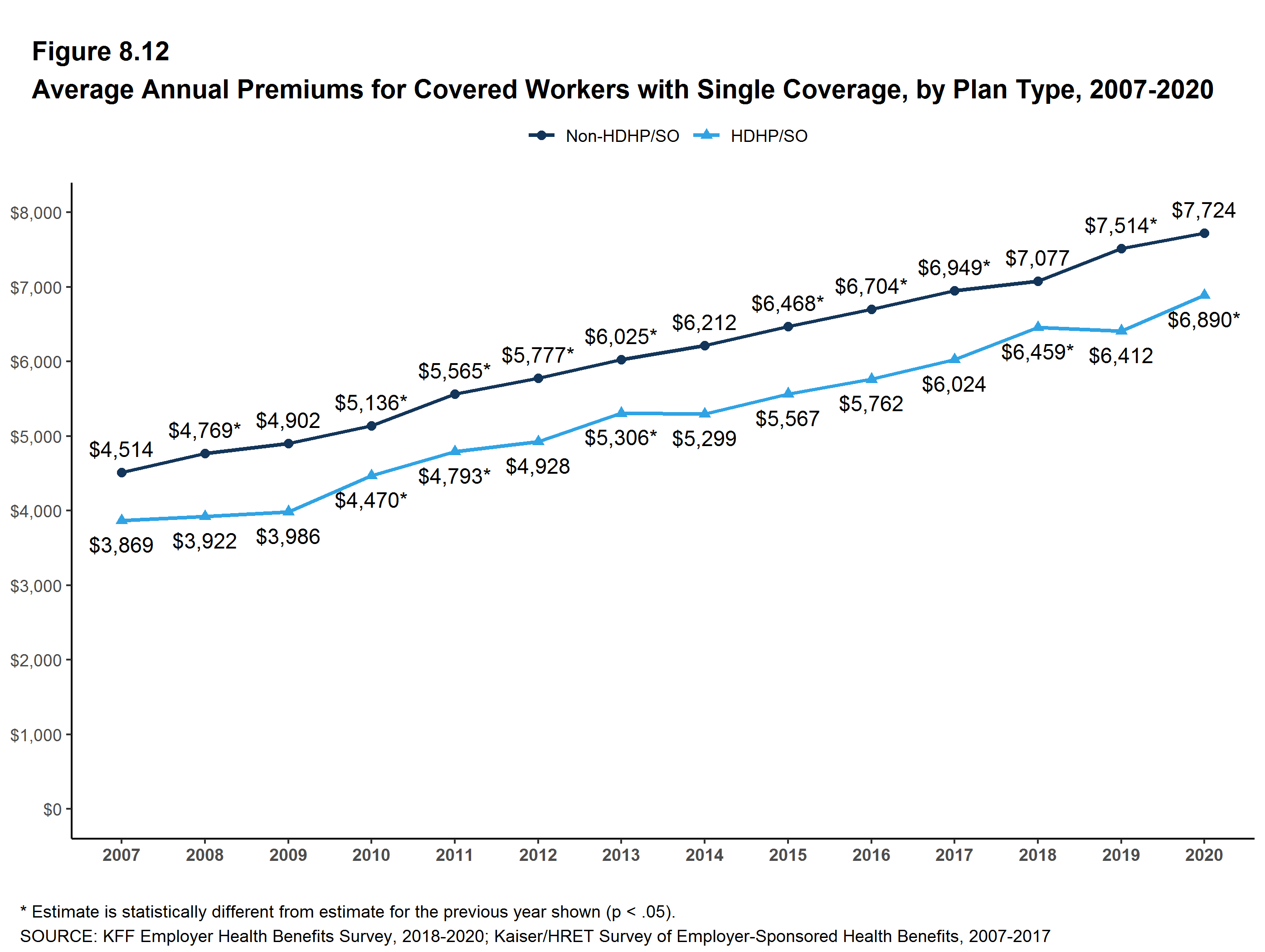 - The average premium for single coverage in 2020 is $7,470 per year. The average premium for family coverage is $21,342 per year [Figure 1.1].