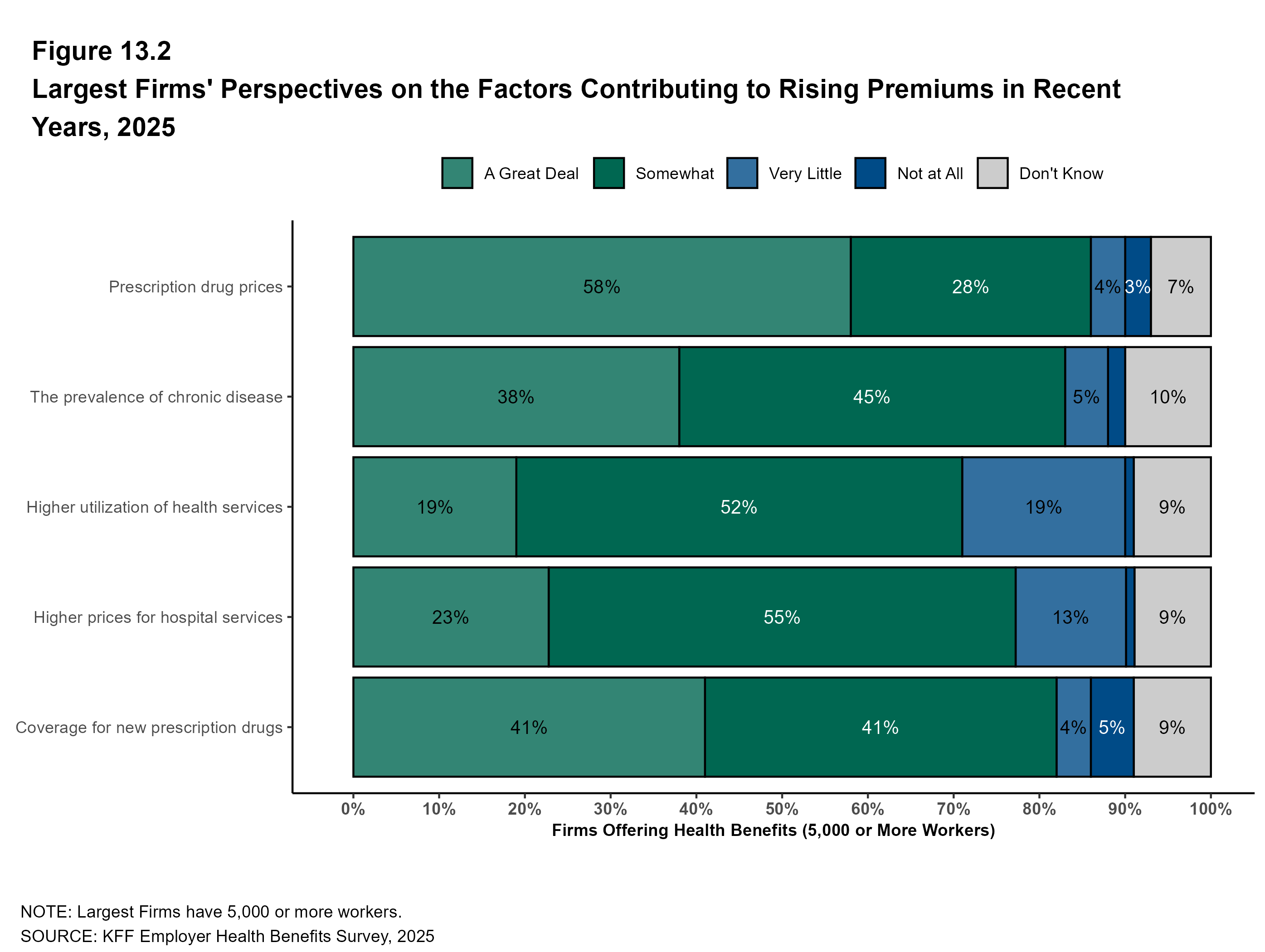 Figure 13.22: Among Firms Offering Health Benefits, How Much Concern Do Employers Have With Various Elements of the Firm’s Plans, 2025