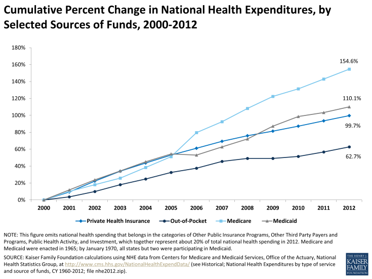 Kaiser Family Foundation calculations using NHE data from Centers for Medicare and Medicaid Services, Office of the Actuary, National Health Statistics Group, at http://www.cms.hhs.gov/NationalHealthExpendData/ (see Historical; National Health Expenditures by type of service and source of funds, CY 1960-2012; file nhe2012.zip).