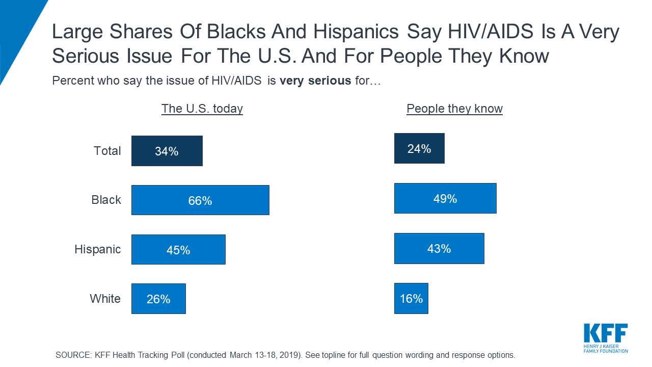 Black and Hispanic adults – populations that are disproportionately affected by HIV – are more likely than white adults to view the epidemic as very serious for the nation overall and for people they know.