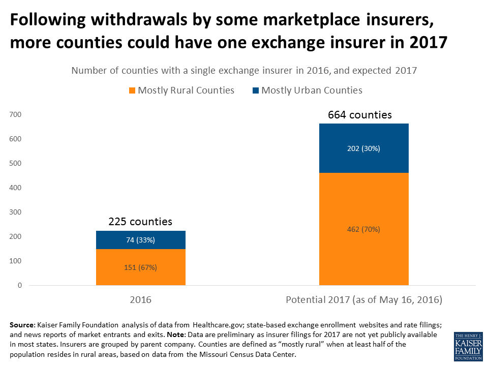 Following Some Withdrawals, More Counties Could Have One ACA Marketplace Insurer in 2017
