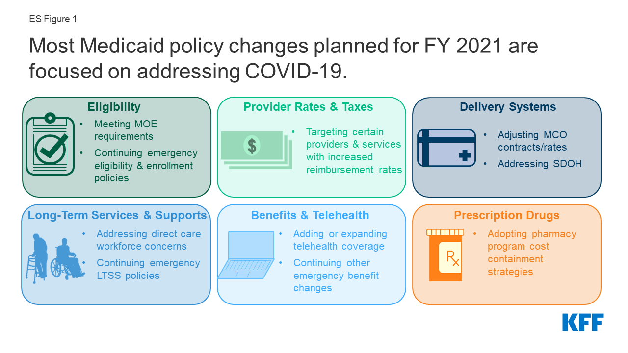 ES Figure 1: Most Medicaid policy changes planned for FY 2021 are focused on addressing COVID-19.