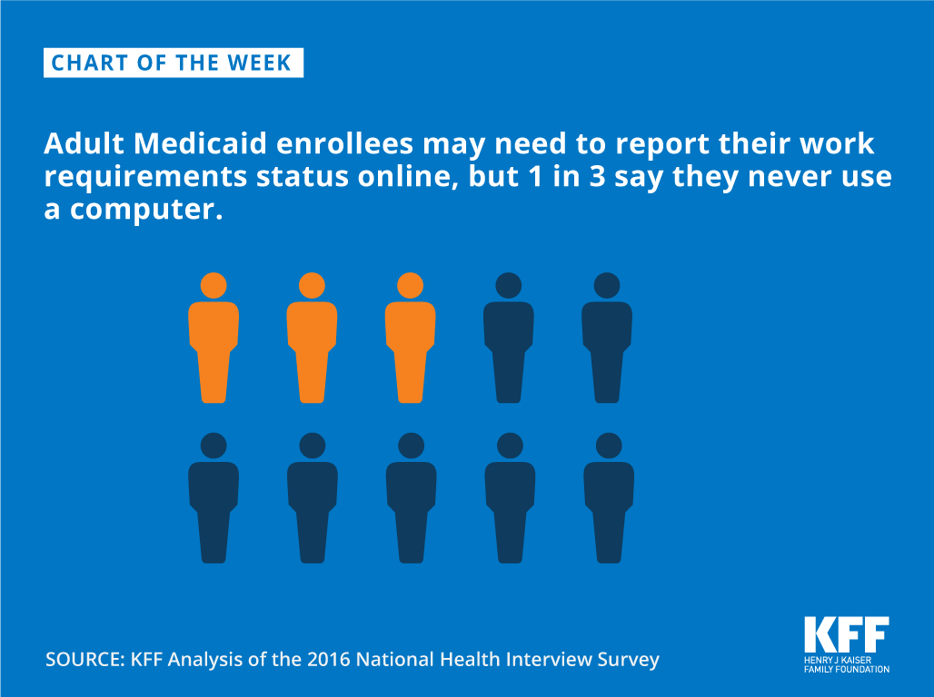Adult Medicaid enrollees may need to report their work requirements status online, but 1 in 3 say they never use a computer.