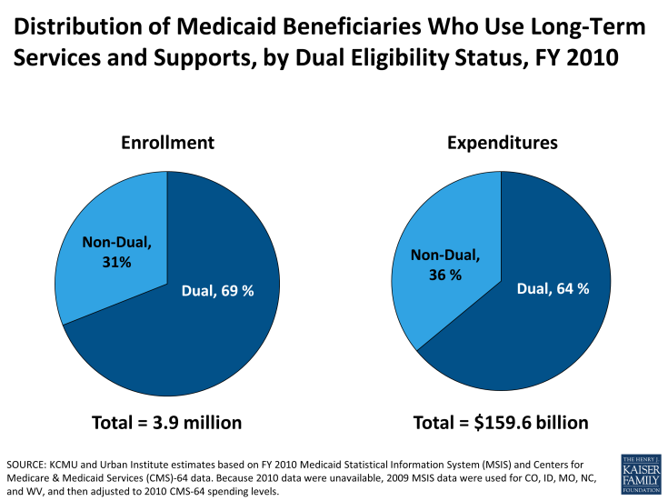 Distribution of Medicaid Beneficiaries Who Use Long-Term Services and Supports, by Dual Eligibility Status, FY 2010