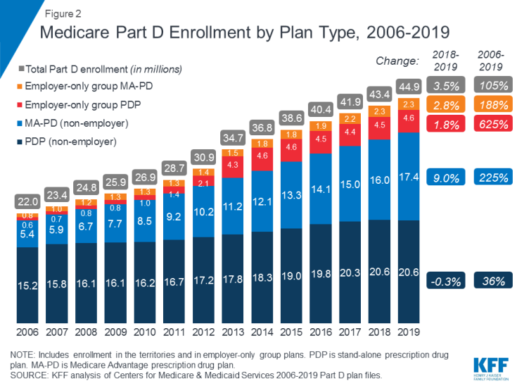 1. Medicare Part D enrollment has doubled since 2006, now totaling 45 million people in 2019