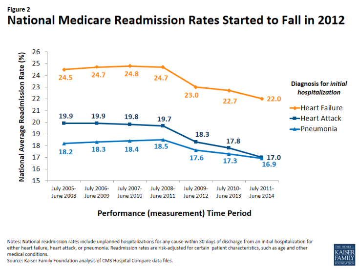 Readmission rates for Medicare patients started to fall in 2012—when CMS began measuring them for the penalty program—and have declined further since