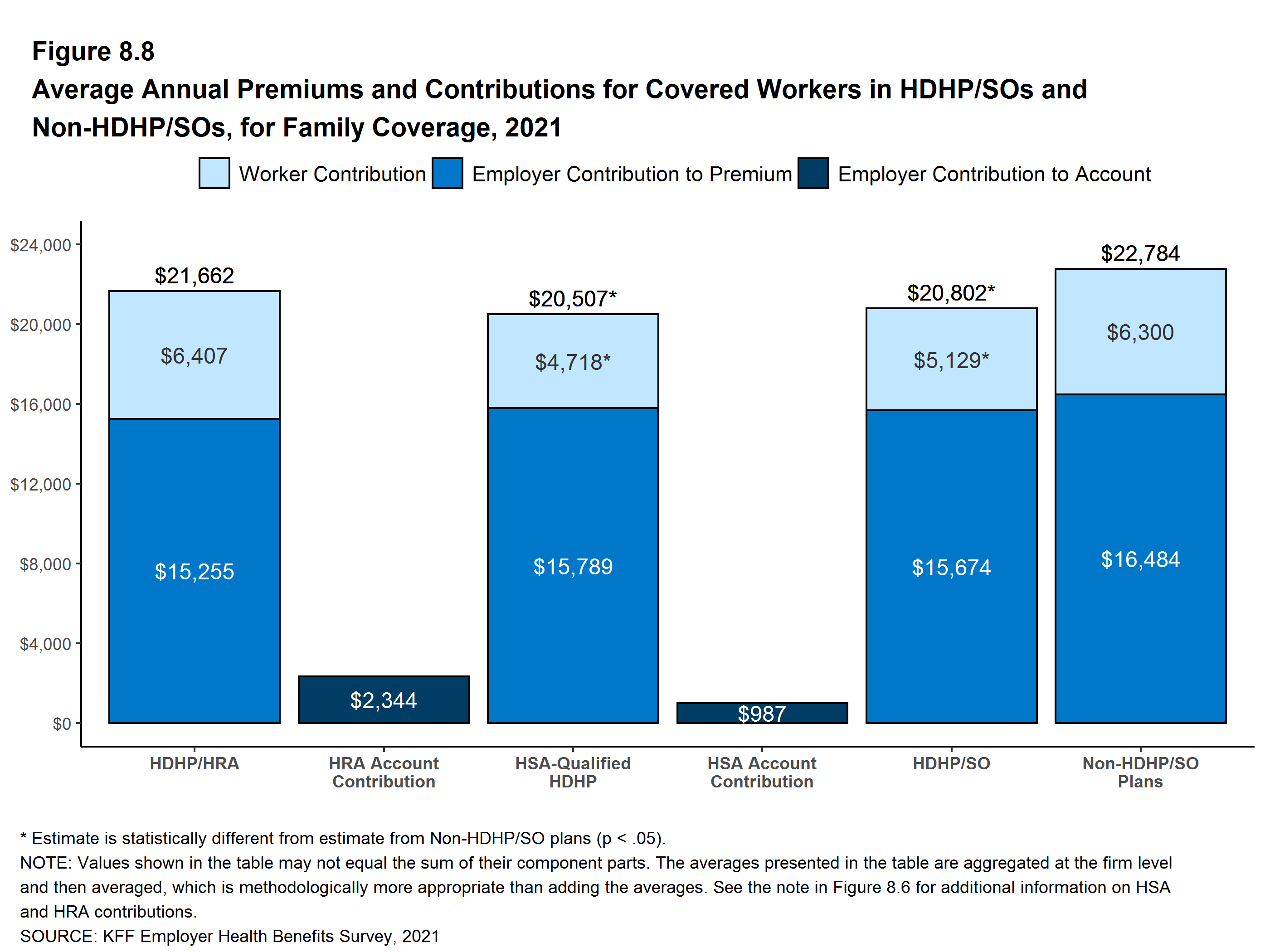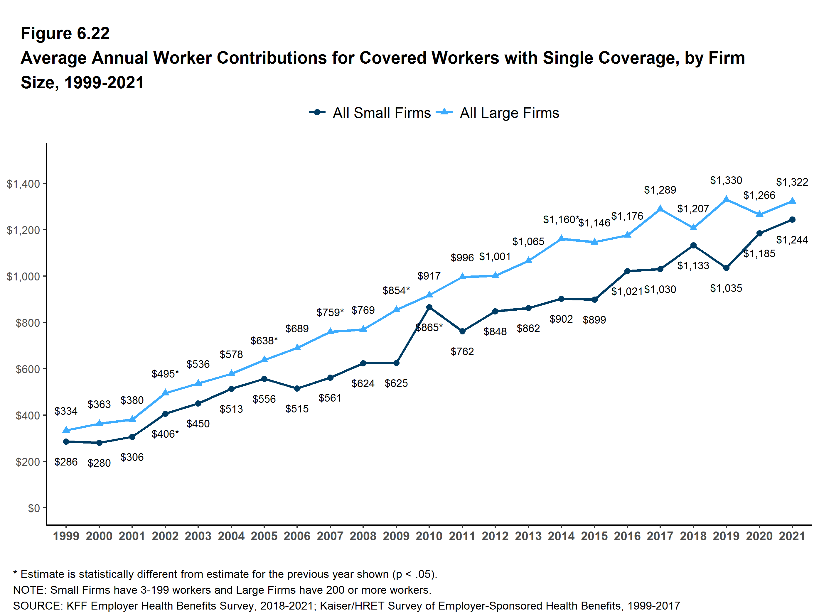 - This graphing tool allows users to look at changes in premiums and worker contributions for covered workers at different types of firms over time: Premiums and Worker Contributions Among Workers Covered by Employer-Sponsored Coverage, 1999-2021.