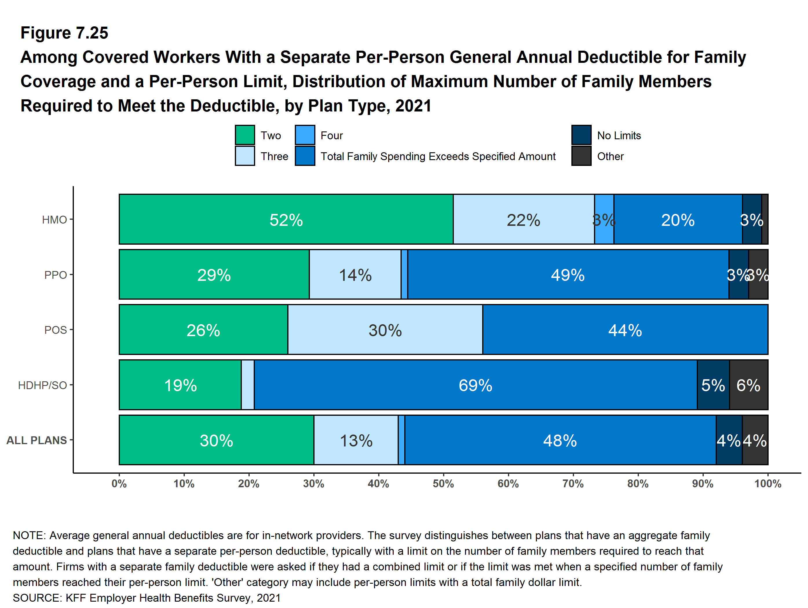Virtually all covered workers are in plans with a limit on in-network cost sharing (called an out-of-pocket maximum) for single coverage, though the limits vary significantly. Among covered workers in plans with an out-of-pocket maximum for single coverage, 13% are in a plan with an out-of-pocket maximum of less than $2,000, while 27% are in a plan with an out-of-pocket maximum of $6,000 or more.