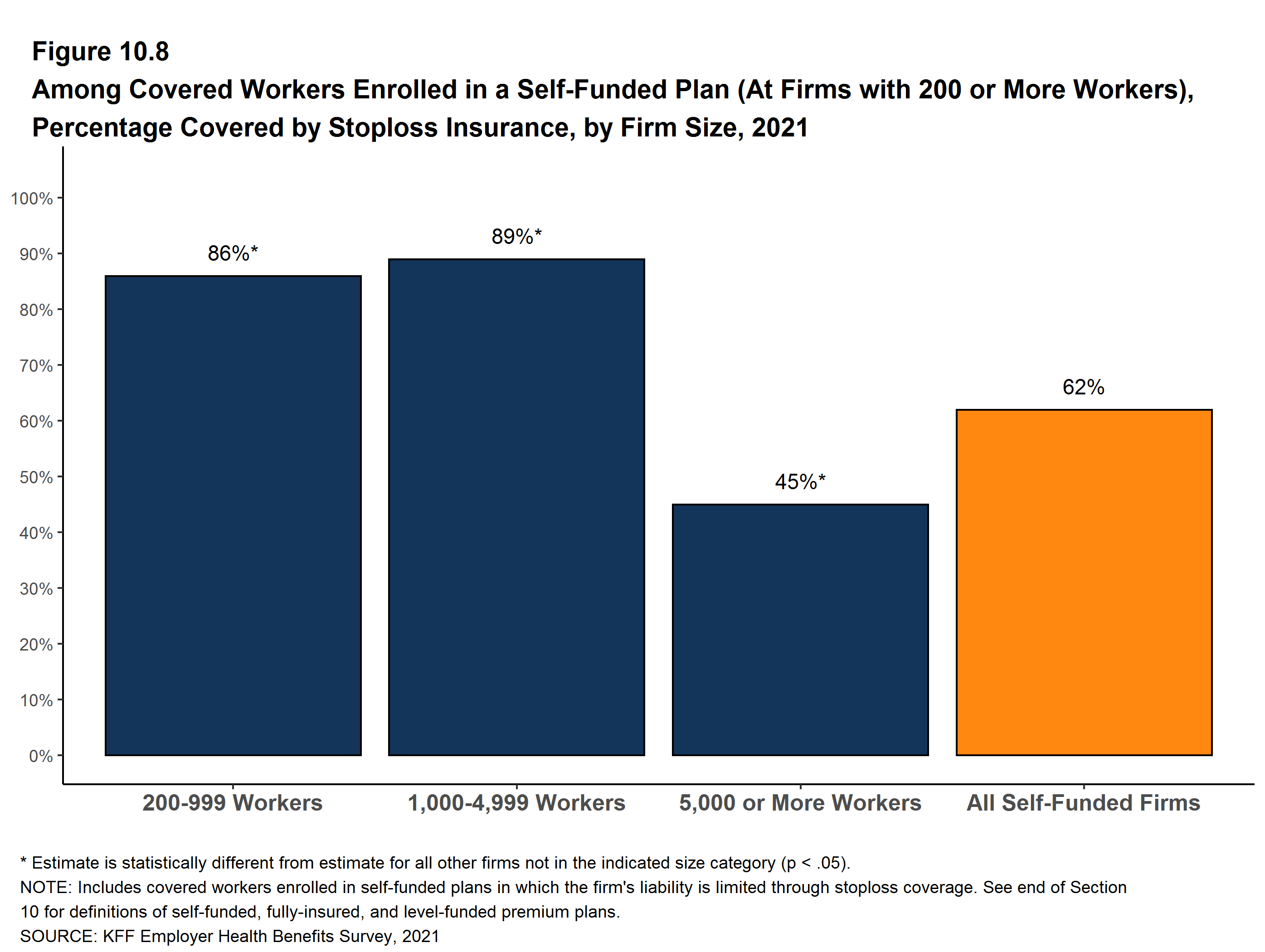 Figure 13.10: Among Firms Offering Health Benefits, Percentage of Firms Whose Largest Plan Waives Cost Sharing for COVID-19 Treatment, by Firm Size, 2021