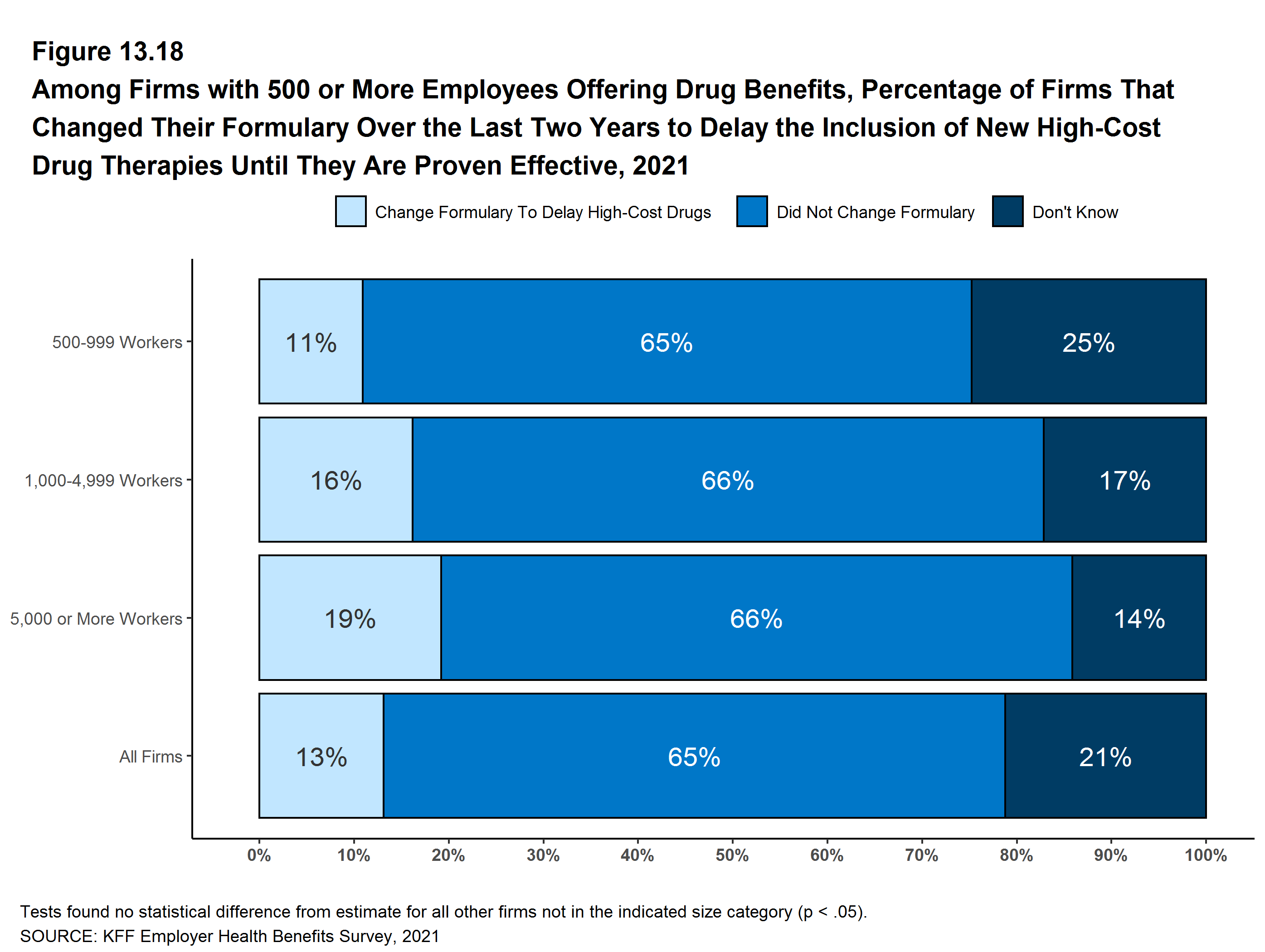 Figure 13.18: Among Firms With 500 or More Employees Offering Drug Benefits, Percentage of Firms That Changed Their Formulary Over the Last Two Years to Delay the Inclusion of New High-Cost Drug Therapies Until They Are Proven Effective, 2021