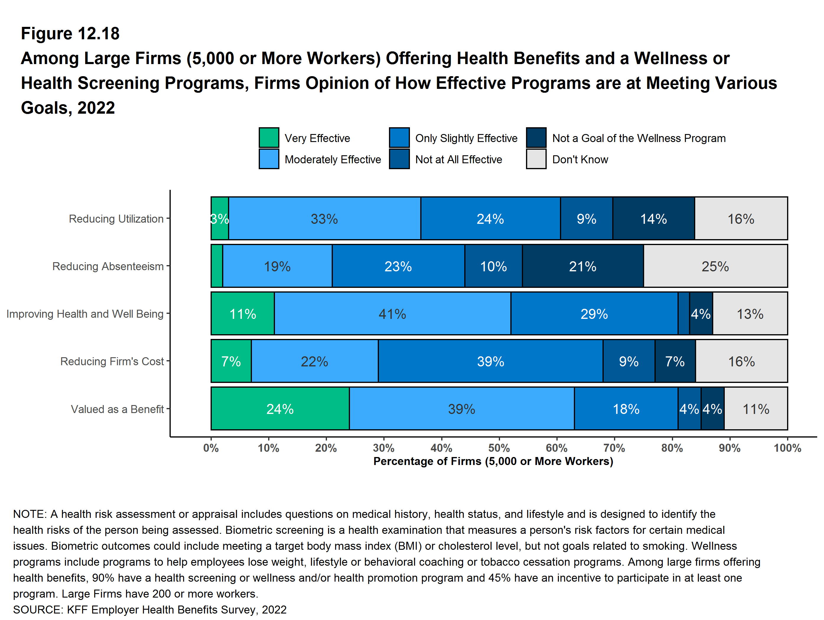 Figure 12.19: Among Large Firms Offering Health Benefits and a Wellness or Health Screening Programs, Percentage of Firms That Added New Vendors or Digital Content to Their Wellness Programs in the Past Two Years, by Firm Size, 2022