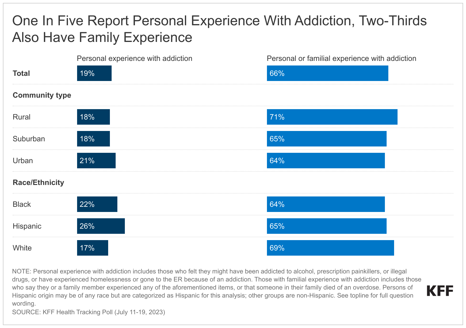 Two-thirds Report They or a Family Member Has Been Addicted to Alcohol or Drugs, or Has Experienced Homelessness, Hospitalization, or Death as a Result of Addiction