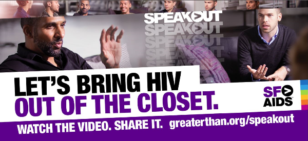 SAN FRANCISCO, Calif., October 4, 2013 – Greater Than AIDS, a leading national public information response to the domestic epidemic, today launched Speak Out, a new campaign developed locally with the San Francisco Department of Public Health to engage gay and bisexual men in response to HIV/AIDS and confront the silence and stigma that too often surrounds the disease. An overarching theme of the cross-platform campaign is to encourage more open communication about HIV in relationships, with health care providers and within the community generally.