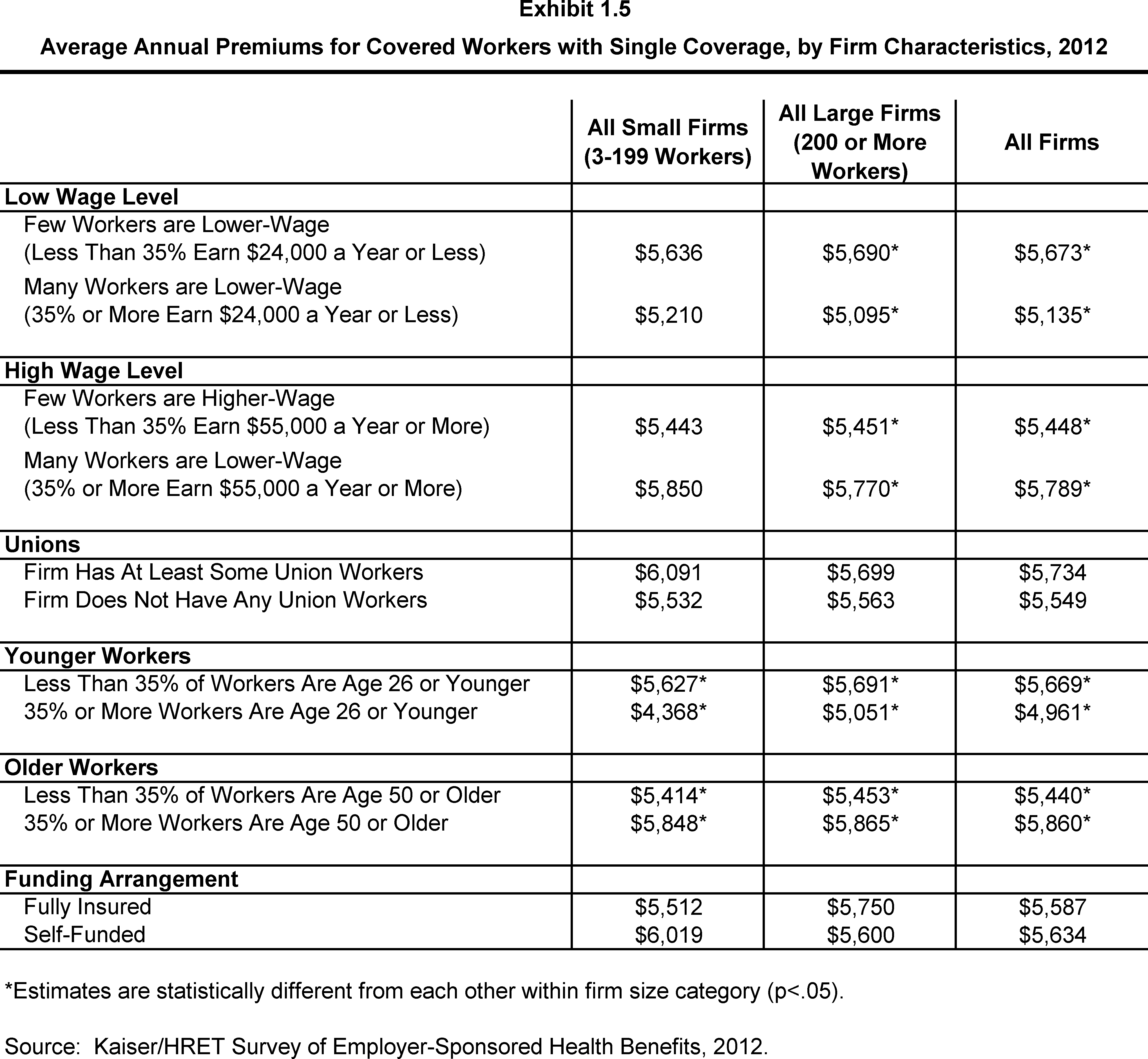 - A Comparison of the Availability and Cost of Coverage for Workers in Small Firms and Large Firms: A View from the 2012 Employer Health Benefits Survey