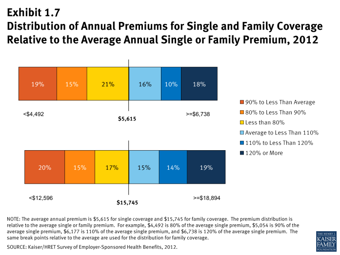 - Eighteen percent of covered workers are employed by firms that have a single premium at least 20% higher than the average single premium, while 19% of covered workers are in firms that have a single premium less than 80% of the average single premium 7 and 8.