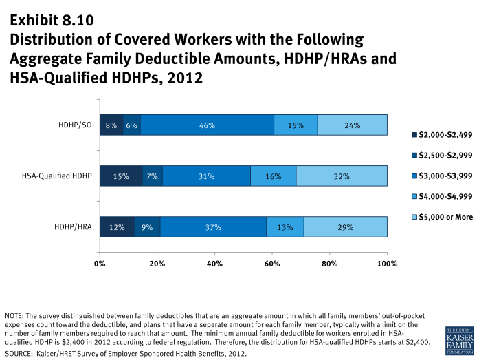 - After two years of significant increases in the percentage of covered workers enrolled in HDHP/SO plans (8% in 2009, 13% in 2010, and 17% in 2011), there was a similar level of enrollment in 2012 (19%) compared to last year 1.