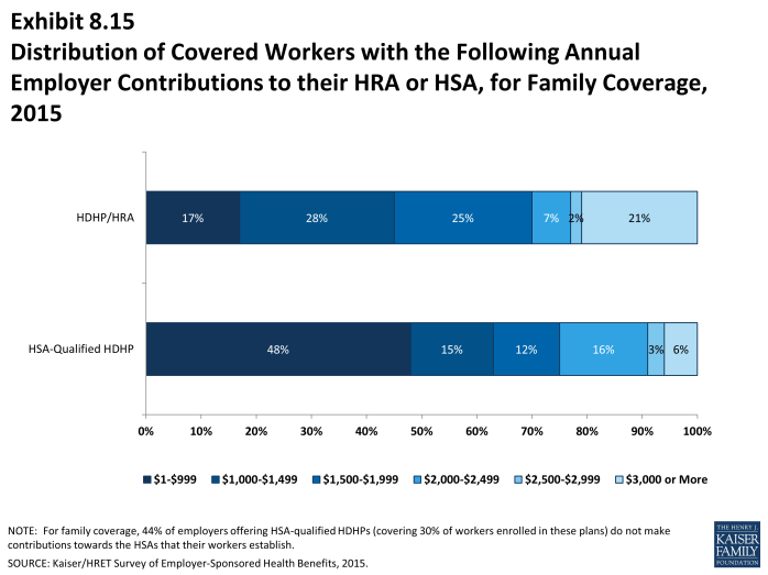 - The definitions of HDHP/SOs do not include other consumer-driven plan options, such as arrangements that combine an HRA with a lower-deductible health plan or arrangements in which an insurer (rather than the employer as in the case of HRAs or the enrollee as in the case of HSAs) establishes an account for each enrollee. Other arrangements may be included in future surveys as the market evolves. ↩︎