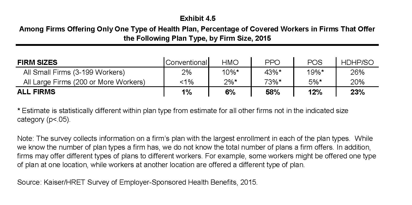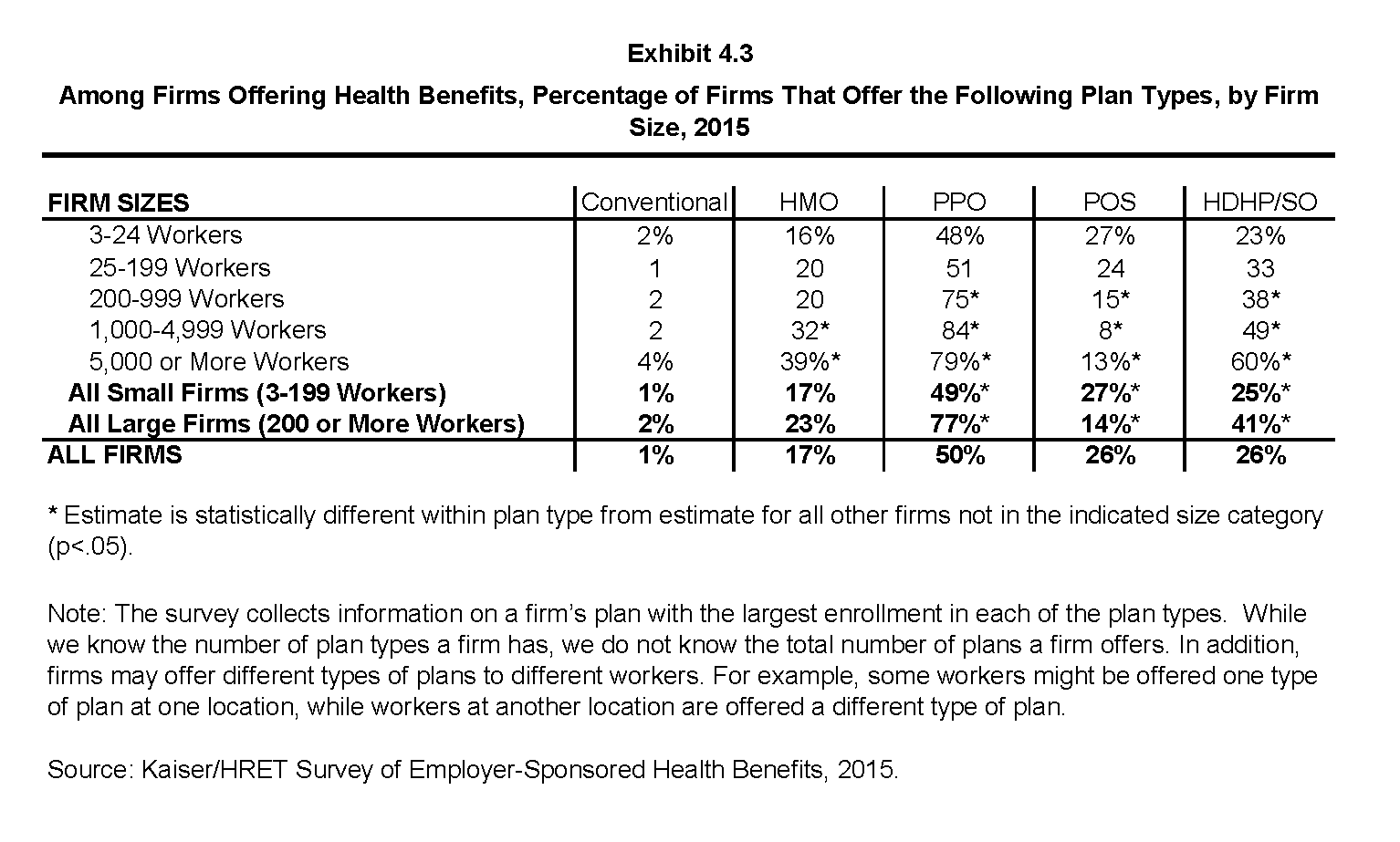 Firms with 50 or more workers were asked: “Does your firm offer health benefits for current employees through a private or corporate exchange?” Employers were still asked for plan information about their HMO, PPO, POS and HDHP/SO plan regardless of whether they purchased health benefits through a private exchange or not.
