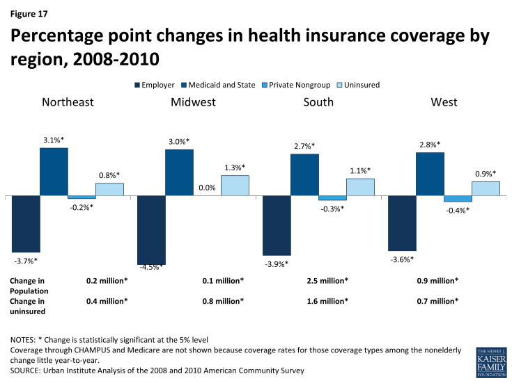 Figure 17: Percentage point changes in health insurance coverage by region, 2008-2010