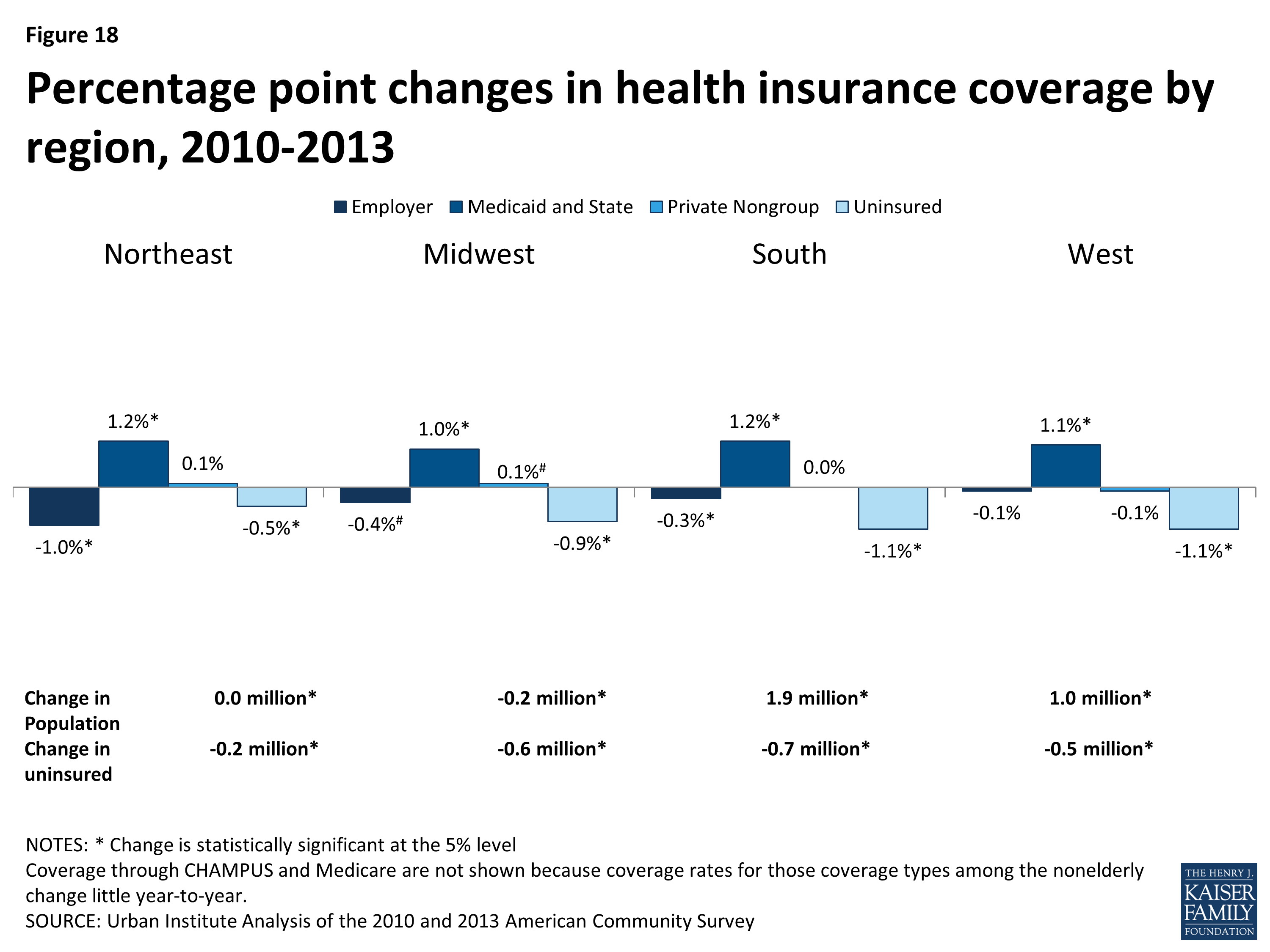 Figure 18: Percentage point changes in health insurance coverage by region, 2010-2013