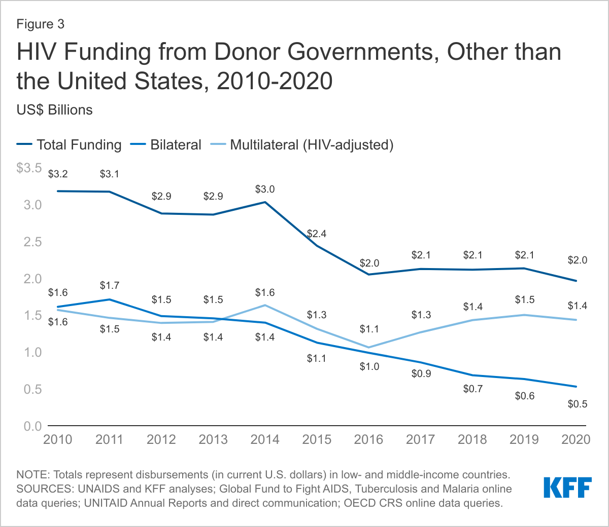 - KFF/UNAIDS, Donor Government Funding for HIV in Low- and Middle-Income Countries in 2020, July 2021. ↩︎