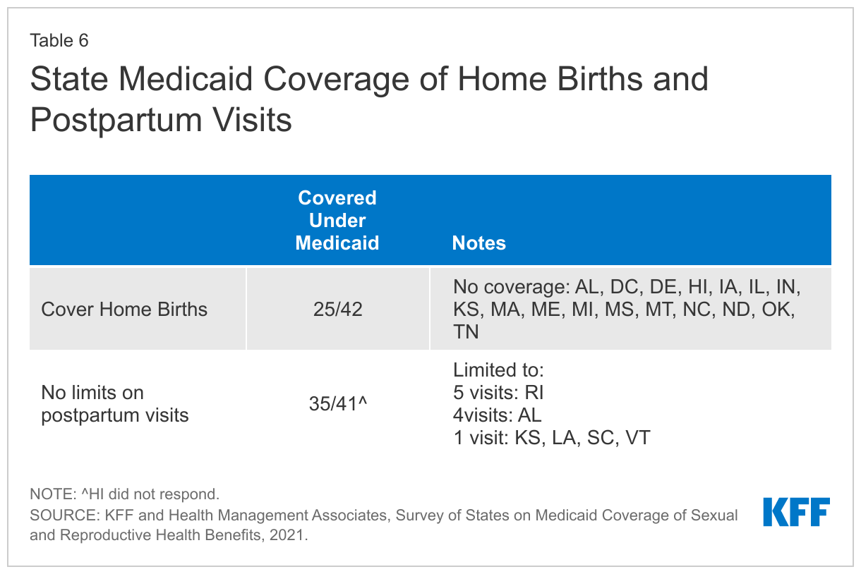 - More than half of responding states cover home births under Medicaid. While clinicians, maternal health researchers, and birthing parents have been discussing home births for decades, interest has grown since the start of the COVID pandemic. Of the 25 states that cover home births, several have prior authorization requirements or require that the birth be attended by a physician or nurse midwife.