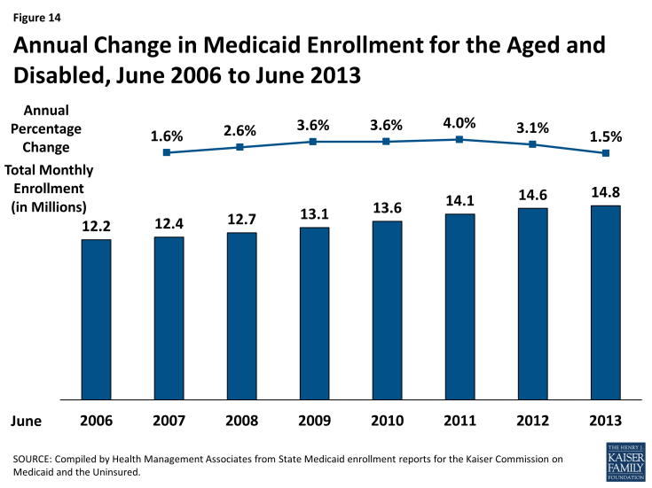 Figure 14: Annual Change in Medicaid Enrollment for the Aged and Disabled, June 2006 to June 2013