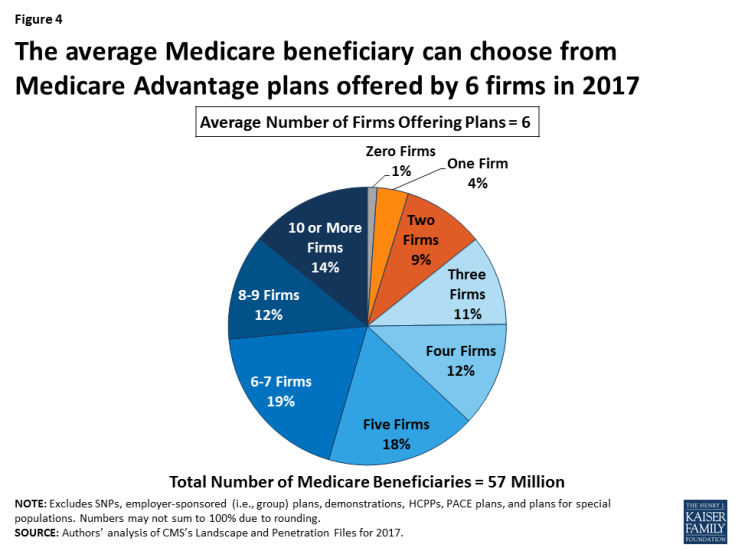 - The average beneficiary will be able to choose from plans offered by six firms; one-quarter of beneficiaries nationwide will have a choice of plans offered by three or fewer firms in 2017.