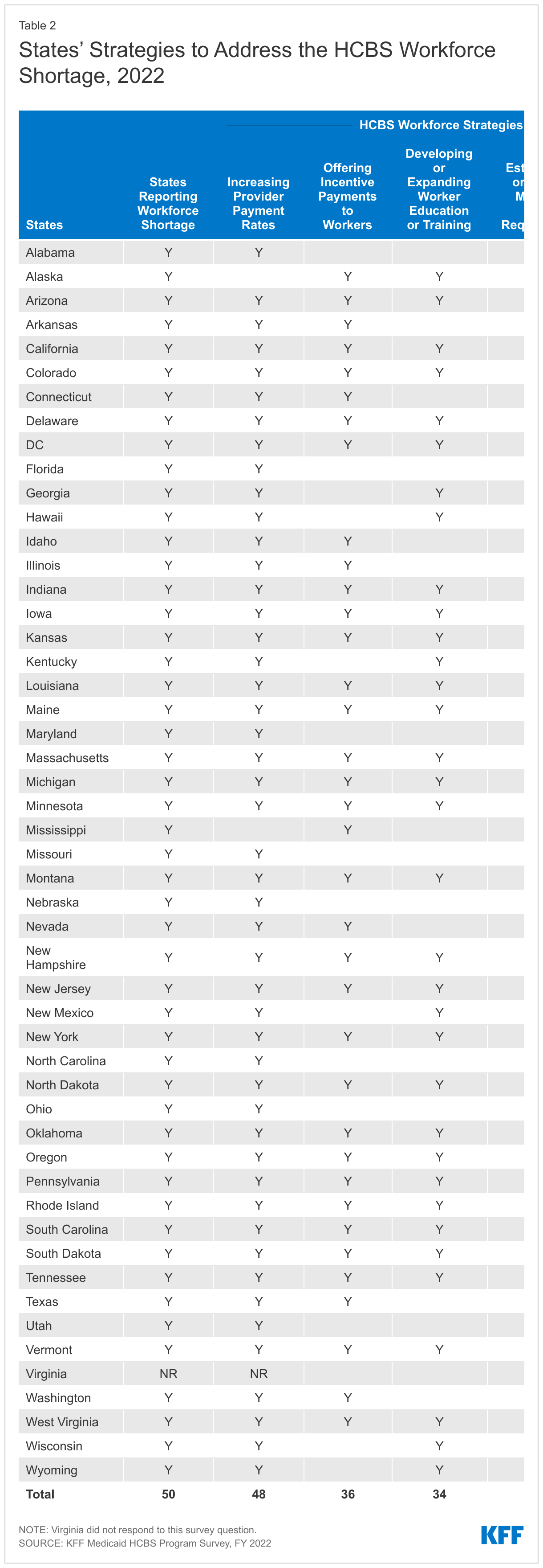 The COVID-19 pandemic illuminated fundamental, long-term challenges for states in providing Medicaid HCBS, but also provided opportunities for change, particularly with new authorities and funding. While states have adopted many new policies to bolster the HCBS workforce, it remains to be seen whether initiatives undertaken during the pandemic will yield more systemic changes longer-term.